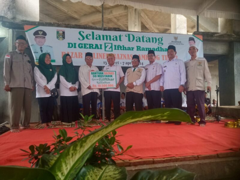 FREENTALK-Badan Amil Zakat Nasional (BAZNAS) Lampung Timur menggelar acara pembukaan gerai bazar Z Ifthar Ramadhan 1445 Hijriah sekaligus menyerahkan bantuan kepada 30 mustahik senilai Rp.10.500 ribu, yang berlangsung di halaman masjid Al-Huda, Desa Srimenanti, Kecamatan Bandar Sribhawono, pada Rabu 13 Maret 2024.