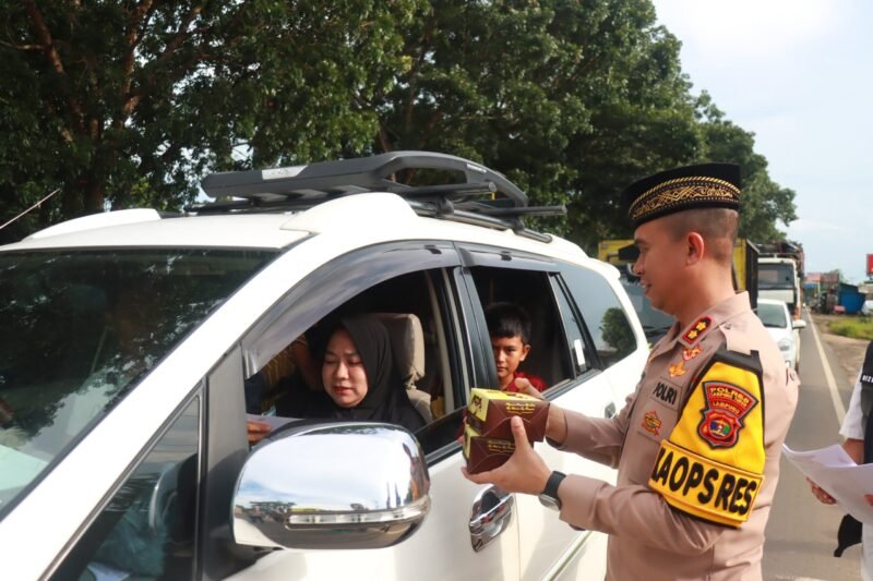 Selain membagikan takjil, jajaran kepolisian juga membagikan stiker “Mudik Aman, Keluarga Aman” kepada pengendara sebagai pengingat agar masyarakat selalu memperhatikan faktor keamanan saat mudik. Mulai dari kesiapan kendaraan, kondisi fisik pengemudi, hingga kepatuhan terhadap aturan lalu lintas.