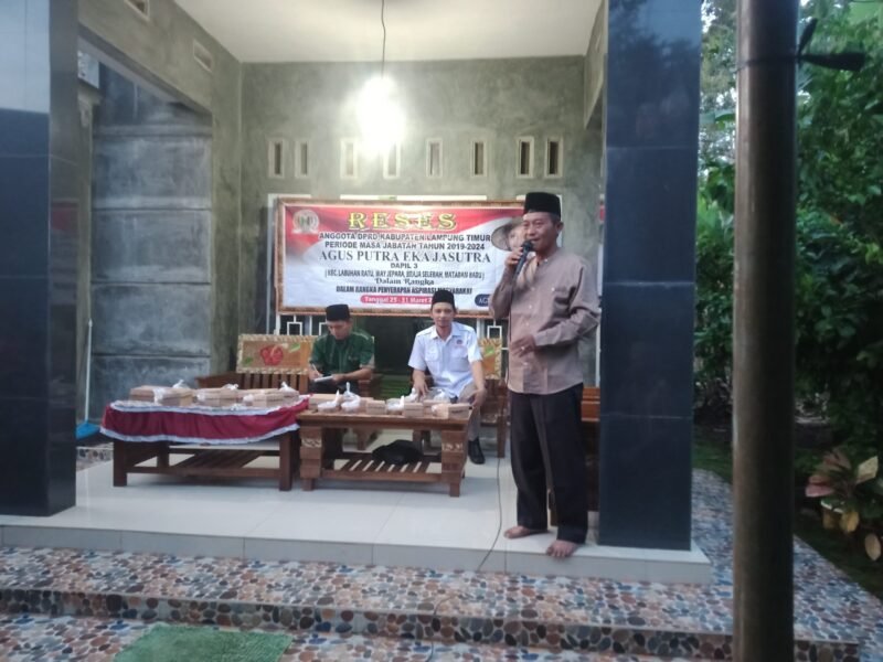 FREENTALK – Menginjak pertengahan bulan Ramadhan 1445 Hijriah, Anggota Komisi I DPRD Kabupaten Lampung Timur, Agus Putra Eka Jasutra, menggelar kegiatan Reses di Dusun 10, Desa Mataram Baru, Kecamatan Mataram Baru, pada Senin, 24 Maret 2024.
